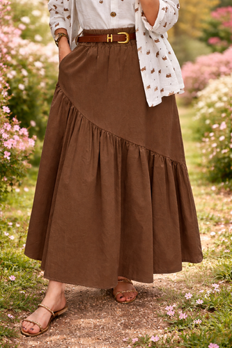 پیراهن لینن کوک دوزی بلند مزونی کمربند دار