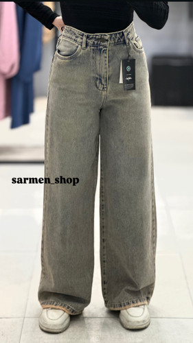 شلوار جین نیم بگ رنگ کثیف زنانه و دخترانه