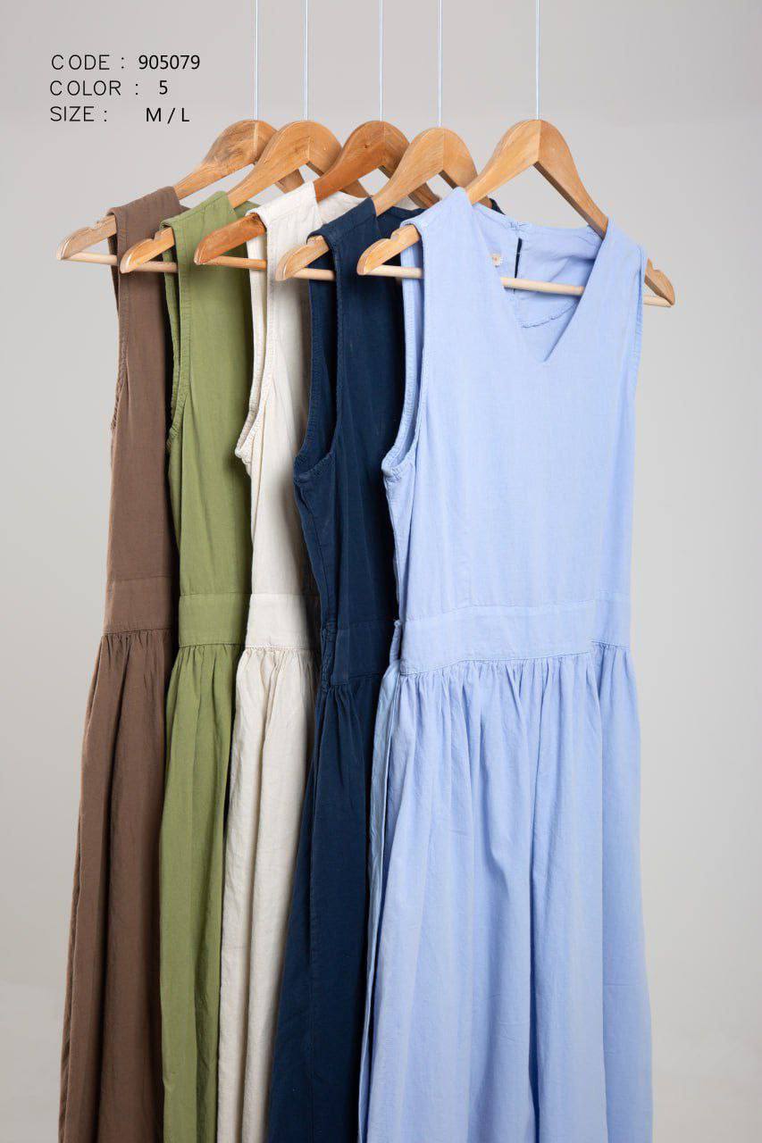 پیراهن لینن کوک دوزی بلند مزونی کمربند دار