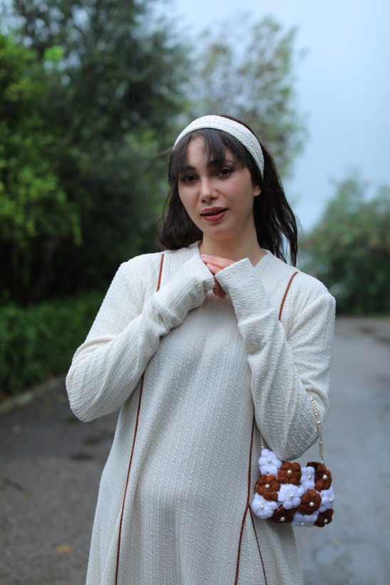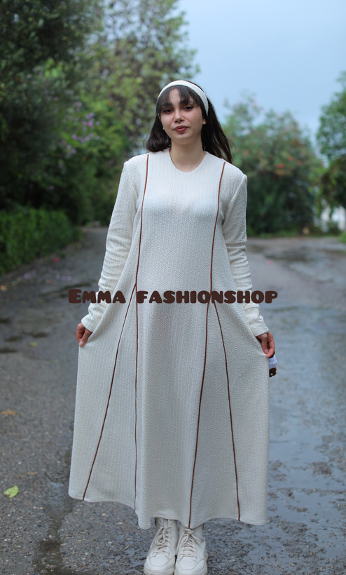 پیراهن مغزدوزی ژاکارد پفکی با گیفت کیفت